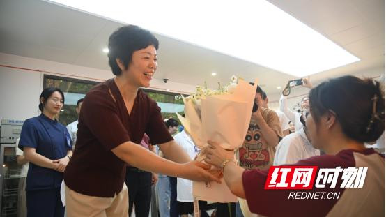 长沙市卫生健康委主任苏敏芳为献血者献花